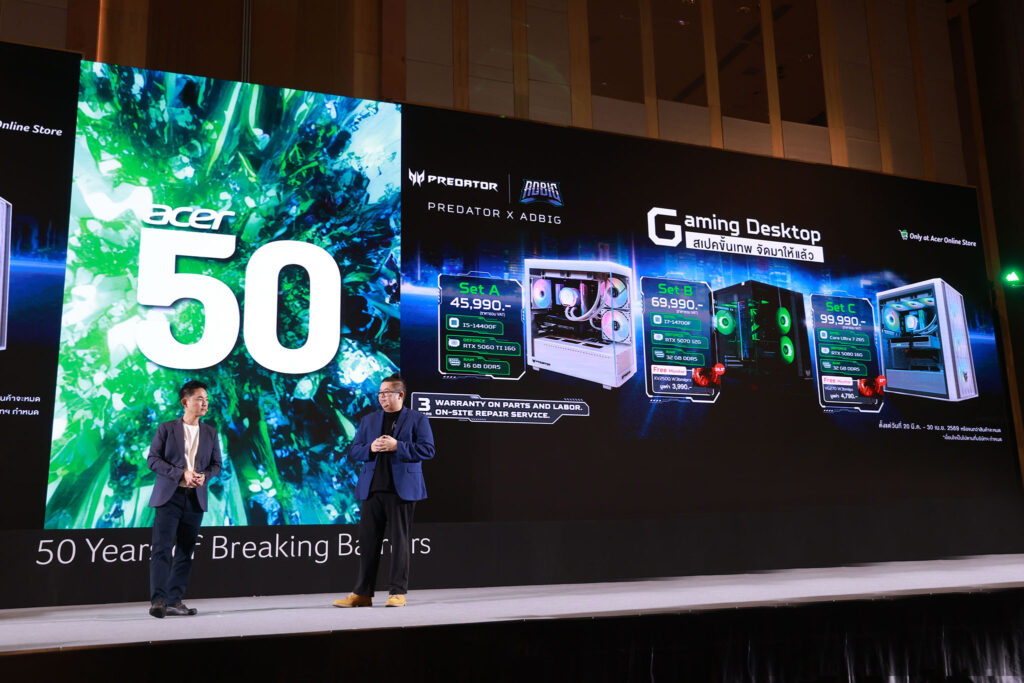 ในวาระครบรอบ 50 ปีของเอเซอร์ จึงไม่ได้เป็นเพียงหมุดหมายแห่งความสำเร็จในอดีต แต่คือการประกาศทิศทางใหม่ของแบรนด์อย่างชัดเจน ผ่านการต่อยอดจุดแข็งของธุรกิจพีซี สู่การพัฒนาโซลูชันสำหรับองค์กรและพอร์ตผลิตภัณฑ์ที่ตอบโจทย์ไลฟ์สไตล์ยุคดิจิทัล ภายใต้แนวคิด “The Next Breaking Barriers” ซึ่งสะท้อนการก้าวจากผู้นำเทคโนโลยี สู่การเป็นแบรนด์เทคโนโลยีดิจิทัลไลฟ์สไตล์ที่พร้อมเติบโตอย่างมั่นคง