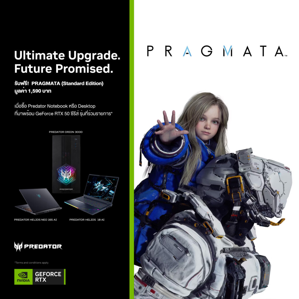 พิเศษ! ซื้อ Predator Notebook หรือ Desktop ที่มาพร้อม GeForce RTX™ 50 ซีรีส์ รุ่นที่ร่วมรายการ* รับฟรีเกม PRAGMATA (Standard Edition) มูลค่า 1,590 บาท  (จำนวนจำกัด)